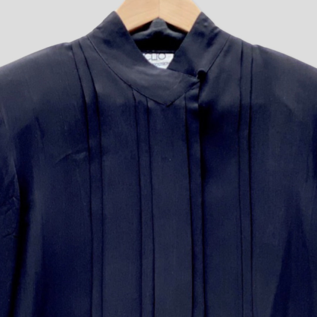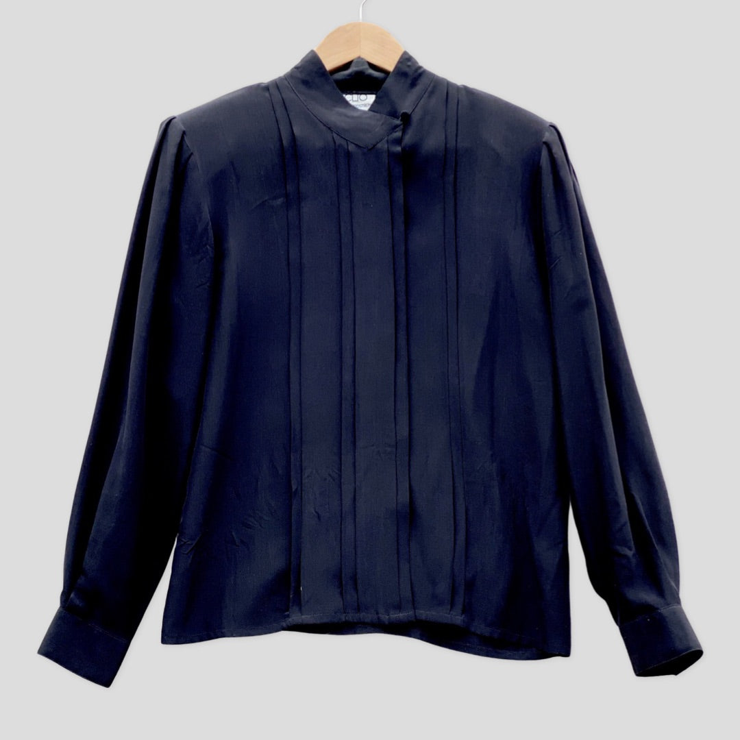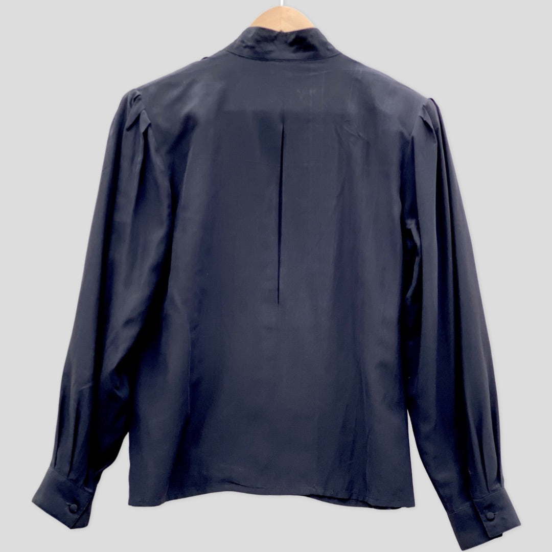 Clio for Nordstrom 100% silk blouse with mandarin collar detail puffed sleeves and hidden button front panel closure.